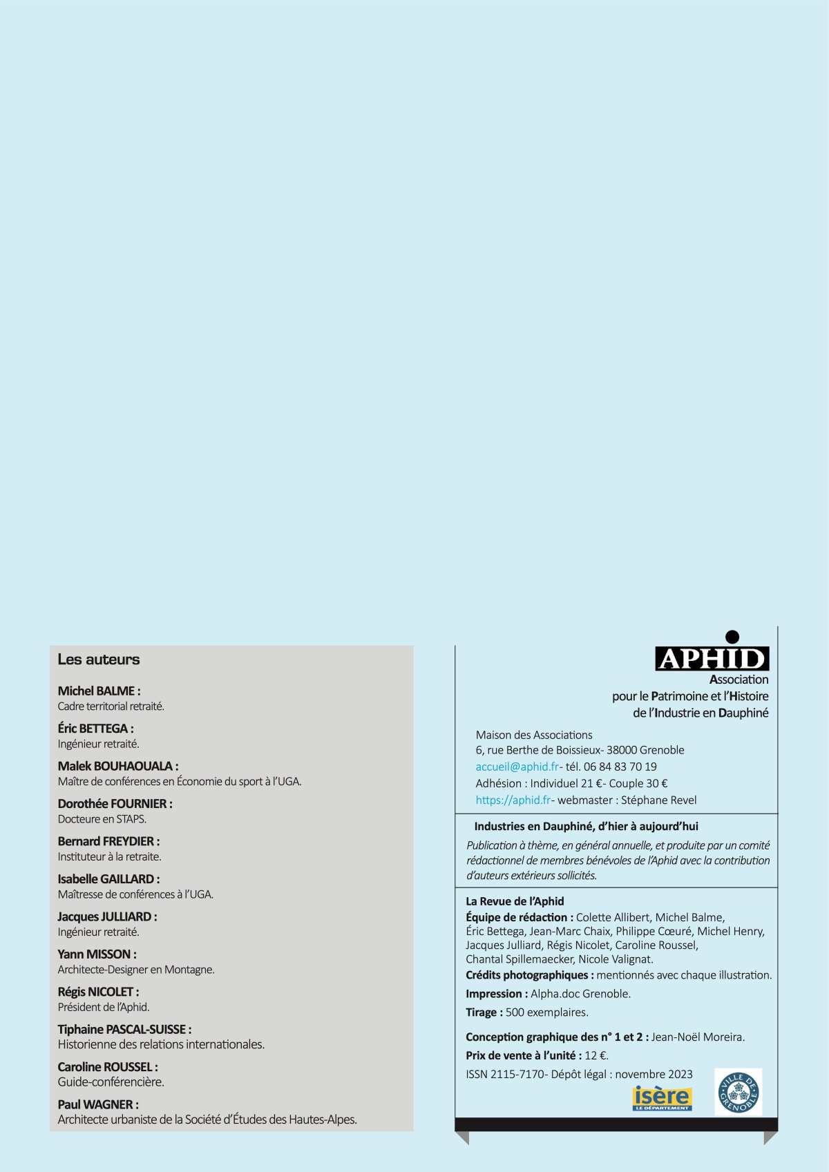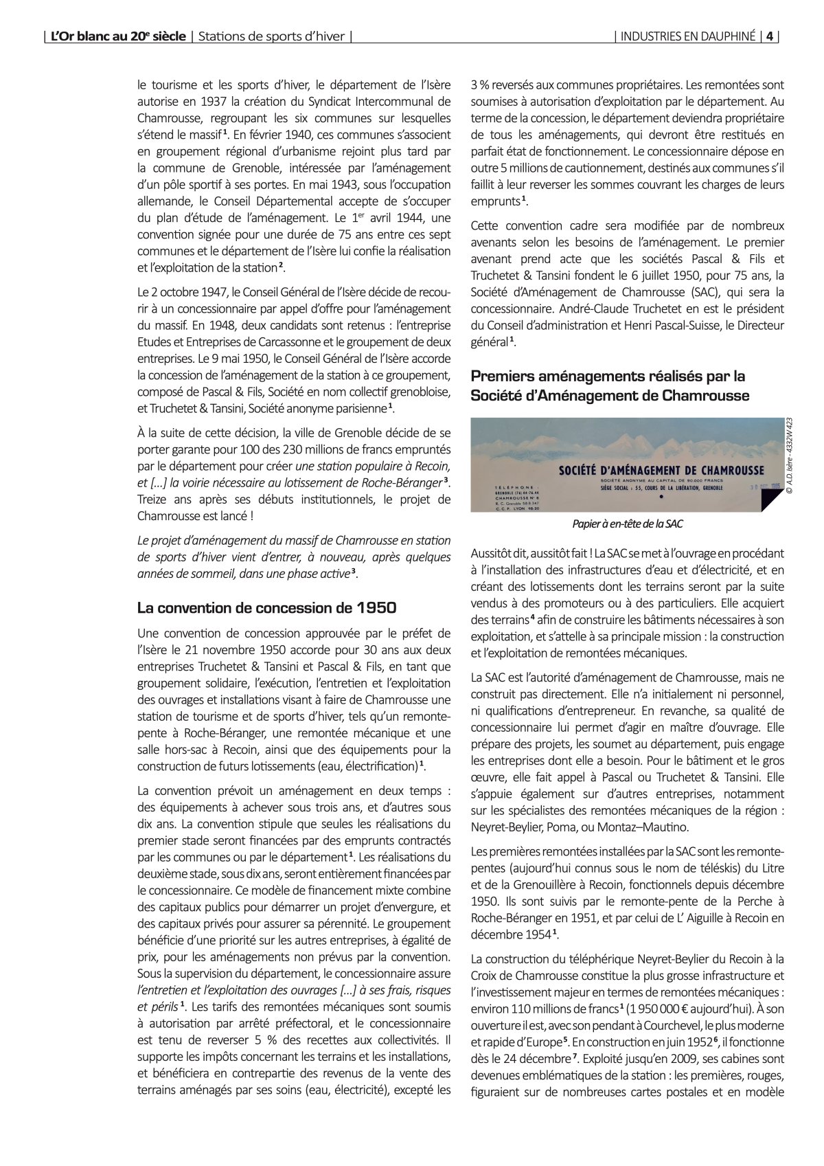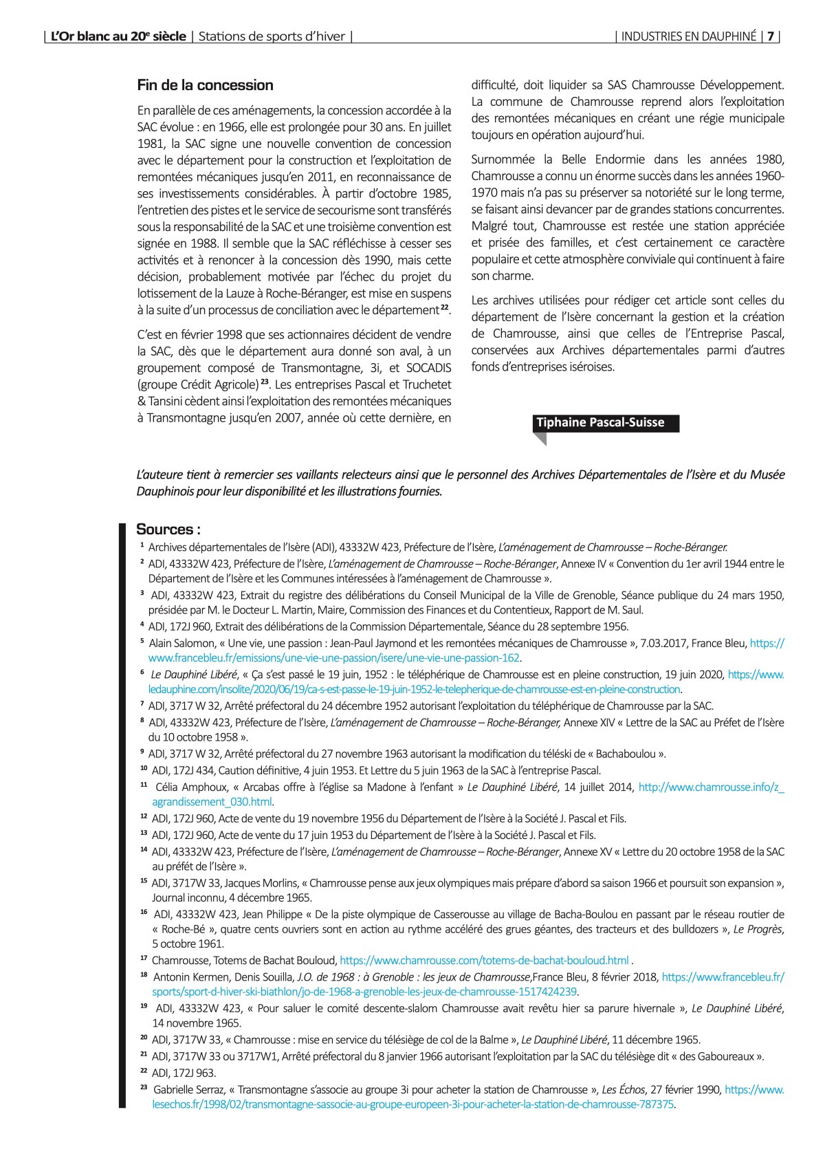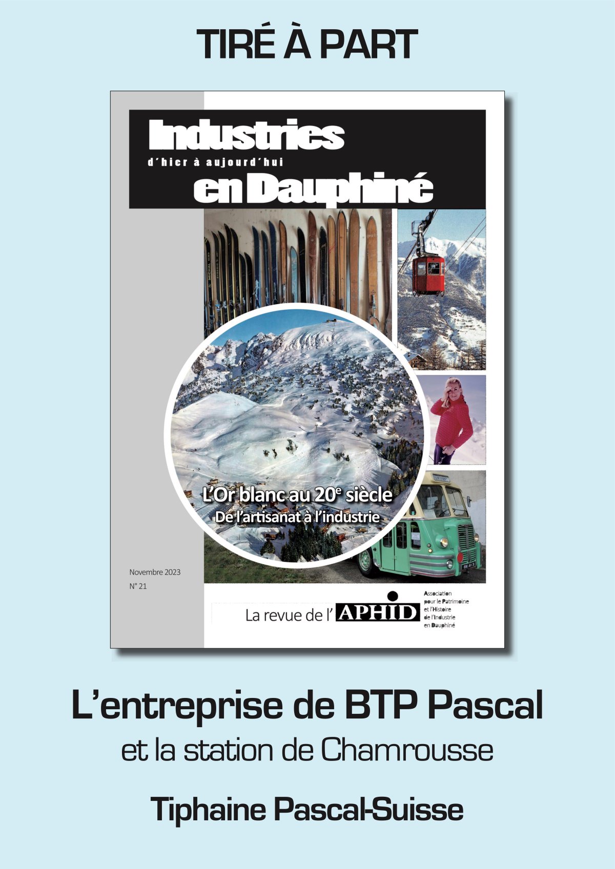 L' Association APHID publie chaque année une revue à thème sur les entreprises et l industrie du Dauphiné. En 2023, elle a consacré sa revue à L'Or blanc au 20e siècle. L'APHID autorise gracieusement à reproduire ici l'article concernant la fondation de la station de sports d'hiver de Chamrousse et la part que l'entreprise Pascal a jouée dans sa construction.